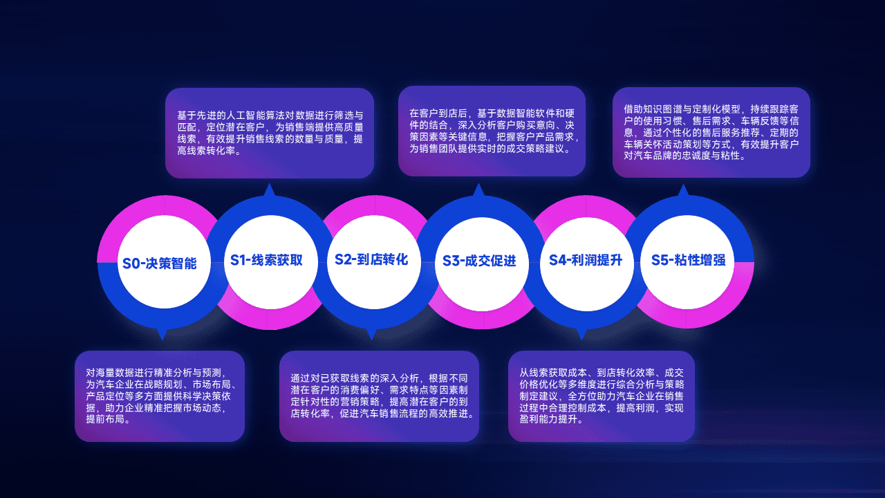 通过拓宽潜在客户来源、、、优化线索分配并提高到店转化率,,以增强销售效率。。同时,,,,利用线索数据不断优化分析模型,,,,有效提升转化率,,,扩大营销影响力。。。。